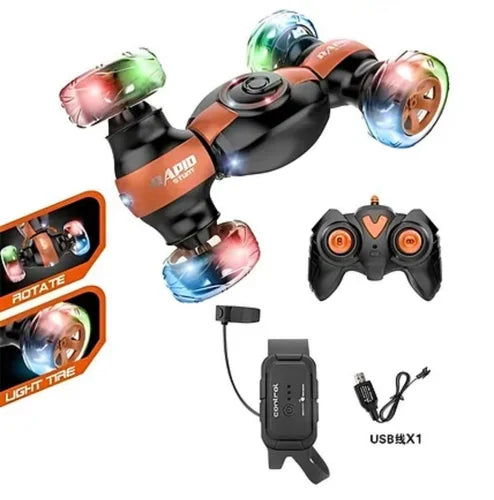 Controlled by a high-tech gesture sensor watch or remote, it performs 360° spins, wild flips, and slides on any terrain. The rechargeable battery ensures hours of play. Perfect for kids who love action-packed adventures!